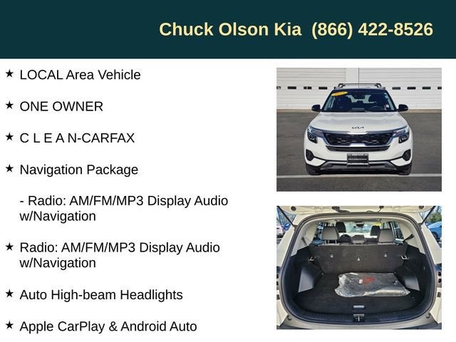 Apple CarPlay & Android Auto, Auto High-beam Headlights, C L E A N-CARFAX, Cloth & Sofino Premium Leatherette Seat Trim, Heated Front Bucket Seats, LOCAL Area Vehicle, Navigation Package, ONE OWNER, Radio: AM/FM/MP3 Display Audio w/Navigation, Wheels: 17 Alloy w/Dark Gray Finish.