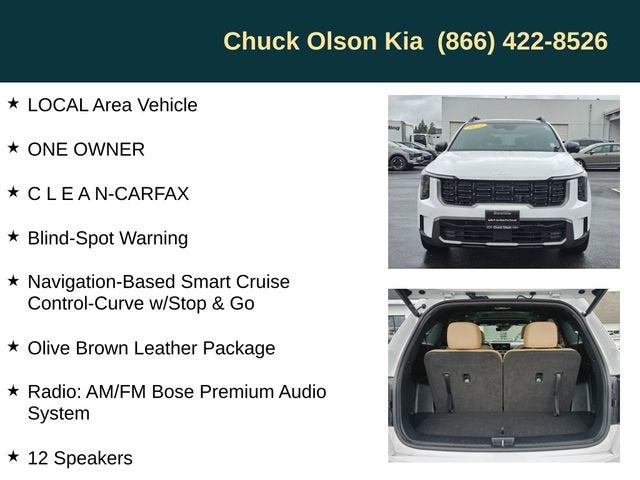 AWD, 12 Speakers, 3rd row seats: split-bench, Apple CarPlay & Android Auto, Blind-Spot Warning, C L E A N-CARFAX, Glass Moon-Roof, Heated & Ventilated Front Bucket Seats, LOCAL Area Vehicle, Memory seat, Navigation-Based Smart Cruise Control-Curve w/Stop & Go, Olive Brown Leather Package, ONE OWNER, Perforated Genuine Leather Seat Trim, Power Liftgate, Radio: AM/FM Bose Premium Audio System, Rain sensing wipers, Smart Key w/ Push Button and Remote Start, Wheels: 8.5J x 20 Gloss Black X-Line Alloy.